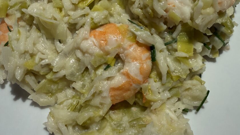 Risotto de crevettes et poireaux